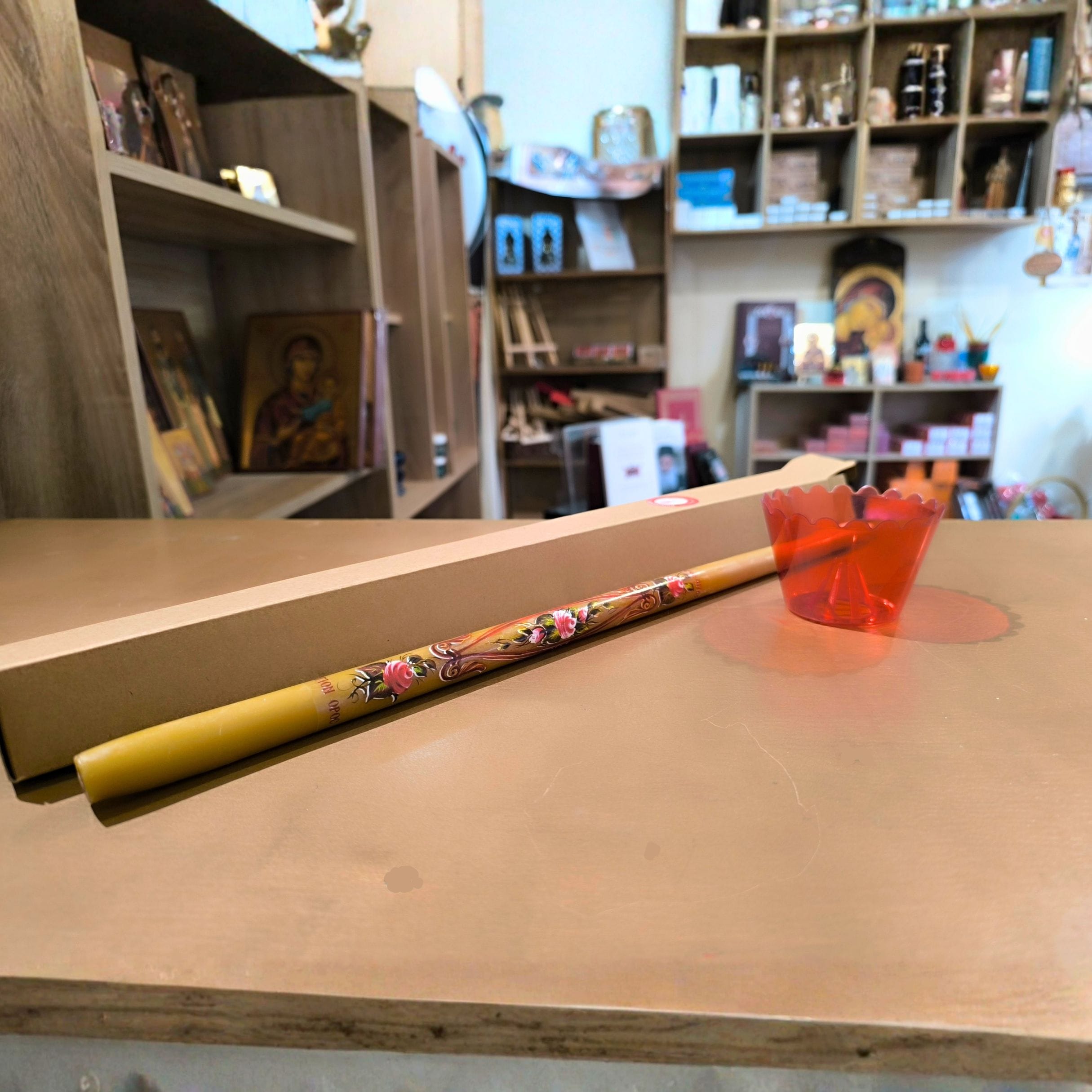 Candela artigianale del Monte Athos da 42 cm, realizzata in pura cera d'api.