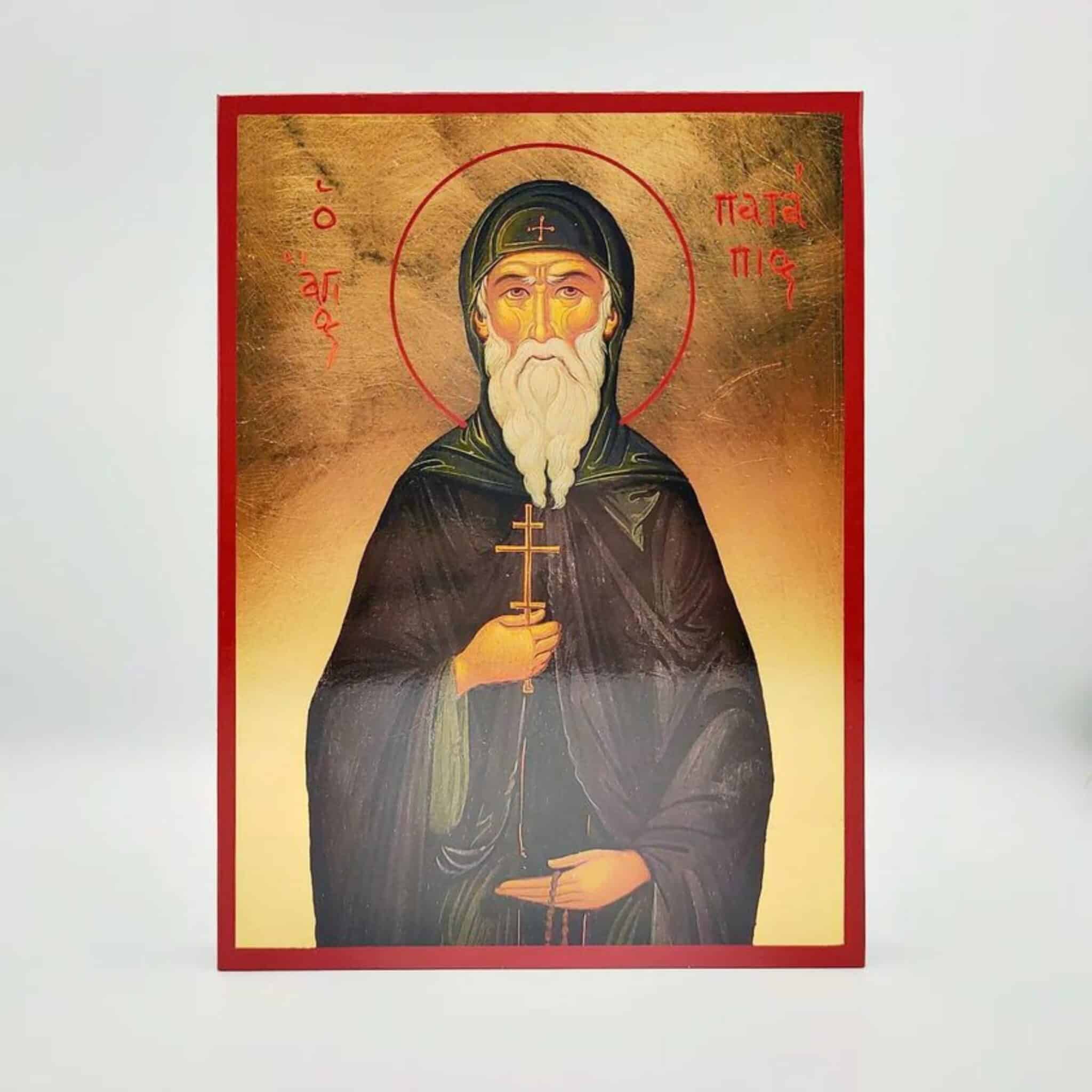 Εικόνα Οσίου Παταπίου 20Χ14 εκ Ξύλινη Χρυσωμένη. Είναι ειδικά επεξεργασμένη με διπλό βερνίκι για να έχει την μέγιστη αντοχή στον χρόνο και τις φθορές.