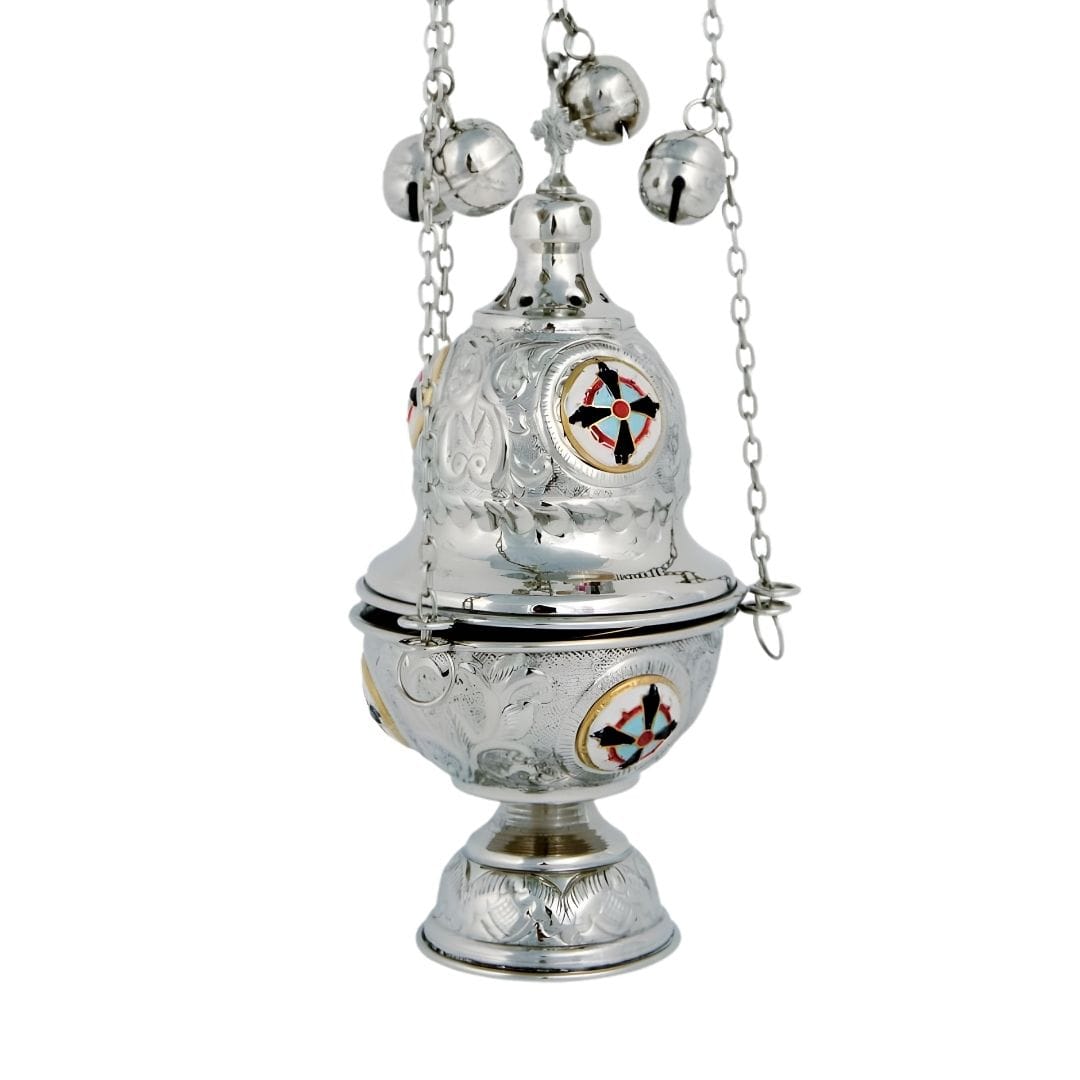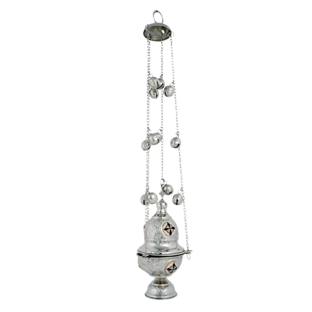 Θυμιατό Επινικελωμένο 377N. Σκαλιστό επινικελωμένο ιερατικό θυμιατό με σμαλτάκι.