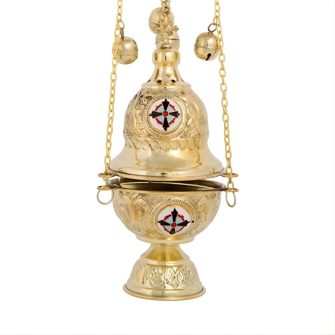 Θυμιατό Μπρούτζινο 377B. Σκαλιστό μπρούτζινο ιερατικό θυμιατό με σμαλτάκι.