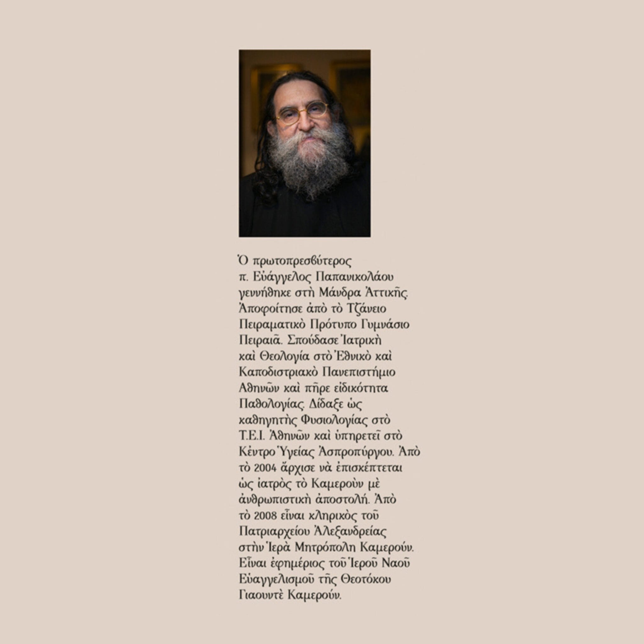 Τα έσοδα του συγγραφέα από αυτό το βιβλίο θα προσφερθούν υπέρ των έργων της Ιεράς Μητροπόλεως Καμερούν.